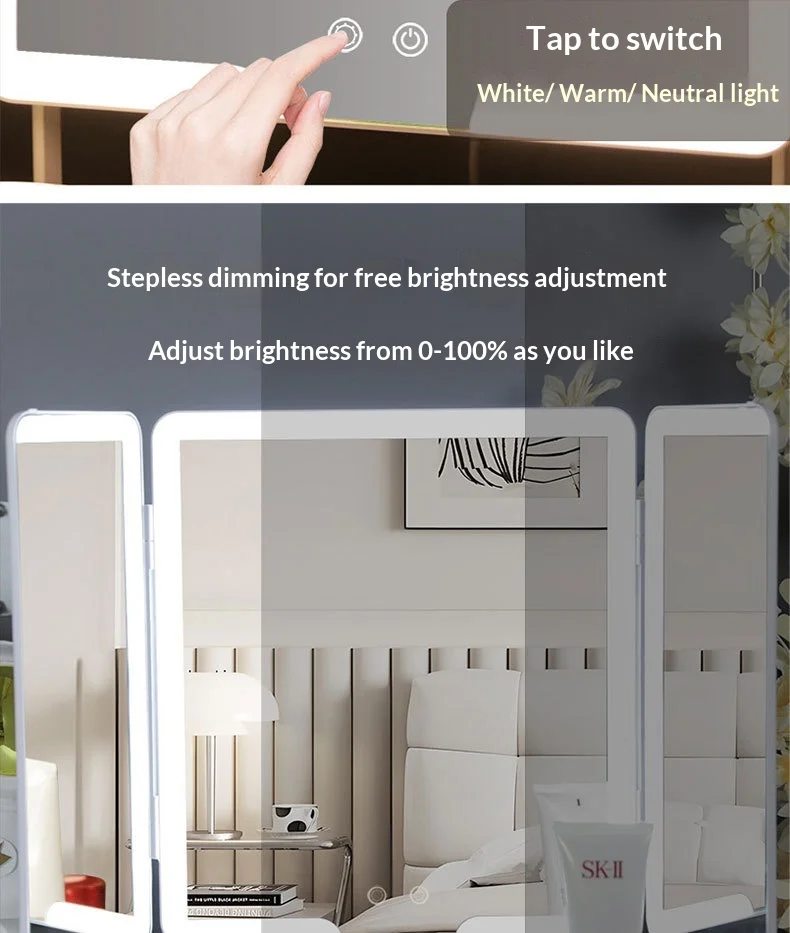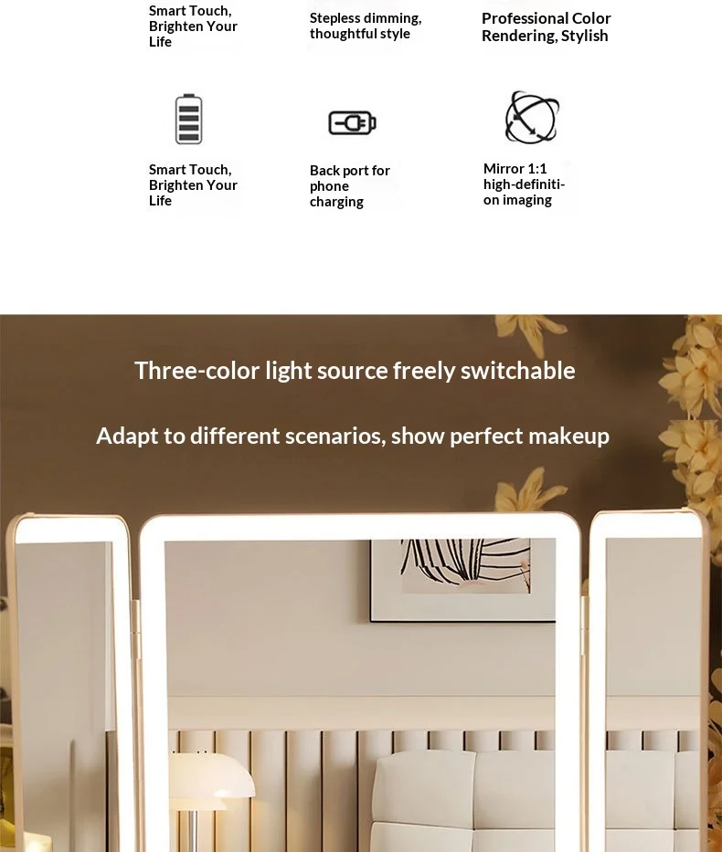 Apportez élégance et praticité à votre espace avec ce miroir sur pied LED pleine longueur tri‑pliant et portable. Conçu pour un usage polyvalent, il combine style moderne et fonctionnalité : idéal pour les chambres, salons, dressing ou toute pièce nécessitant un miroir grand format.